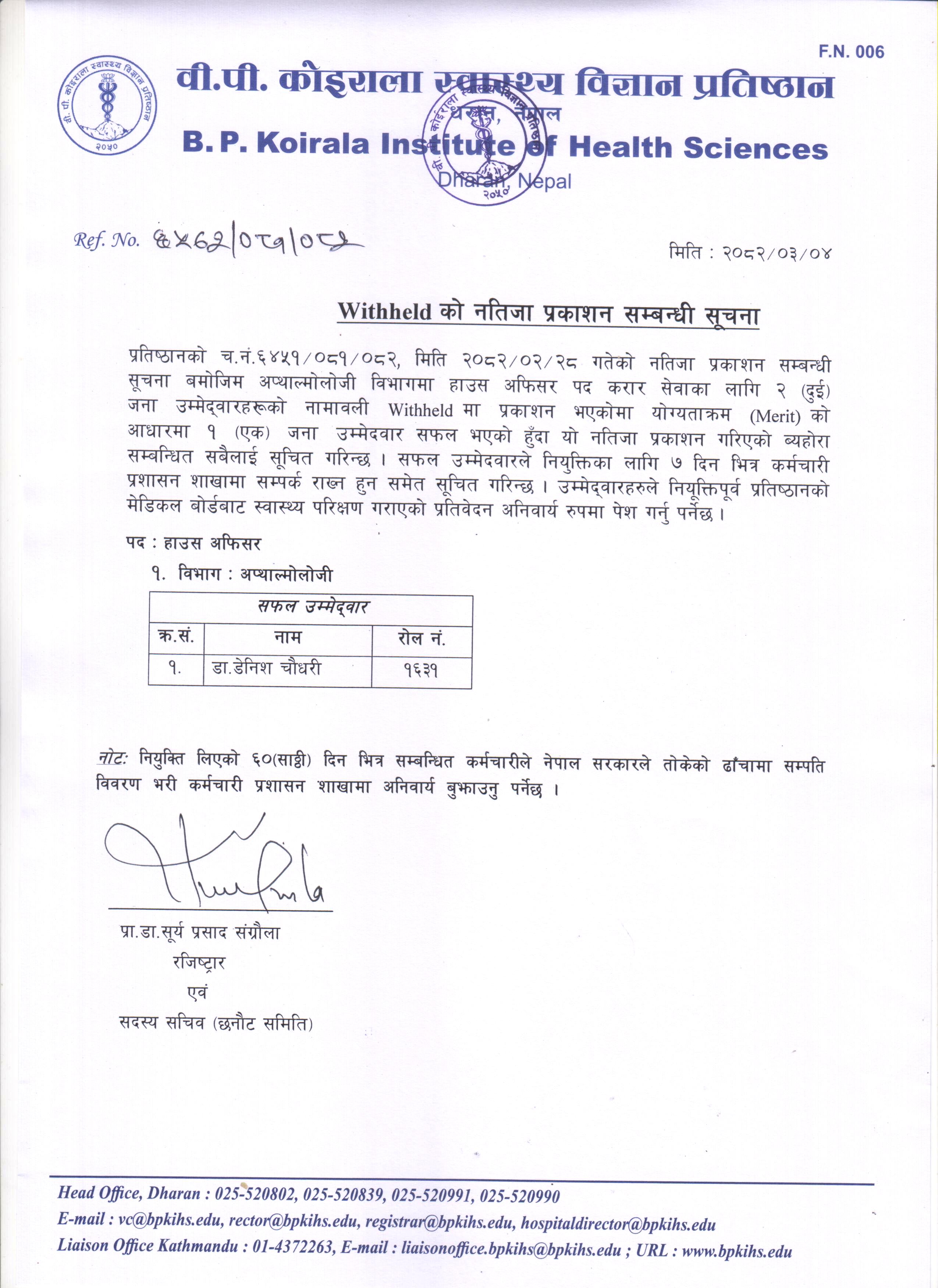 Result of Senior Resident/Lecturer, Optometric & Physiotherapist notice Uploaded Jun 12, 2025 Size 285.87 KB Download