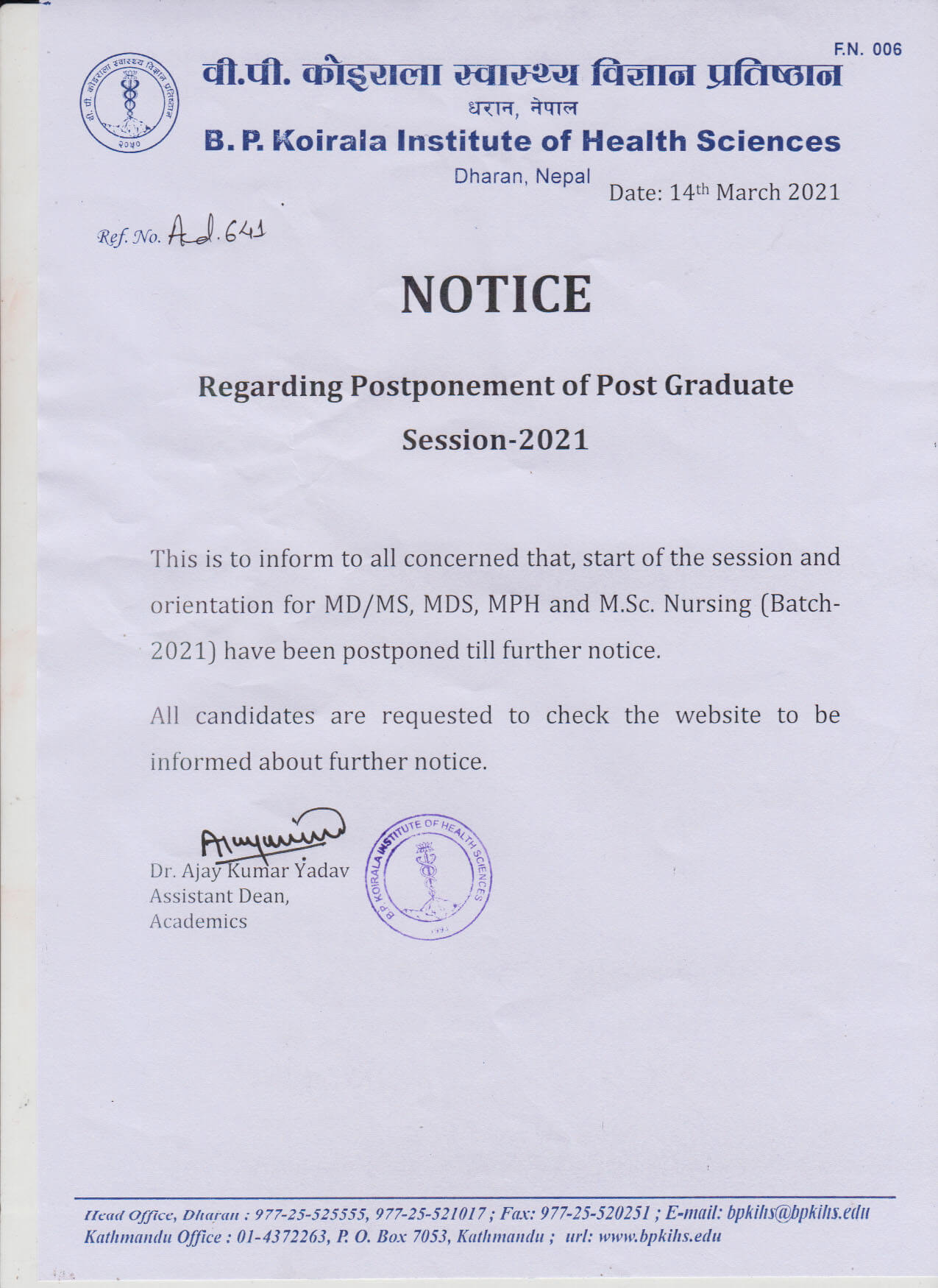 Regarding Postponement of Post Graduate Session - 2021 notice Uploaded Mar 14, 2021 Size 185.59 KB Download